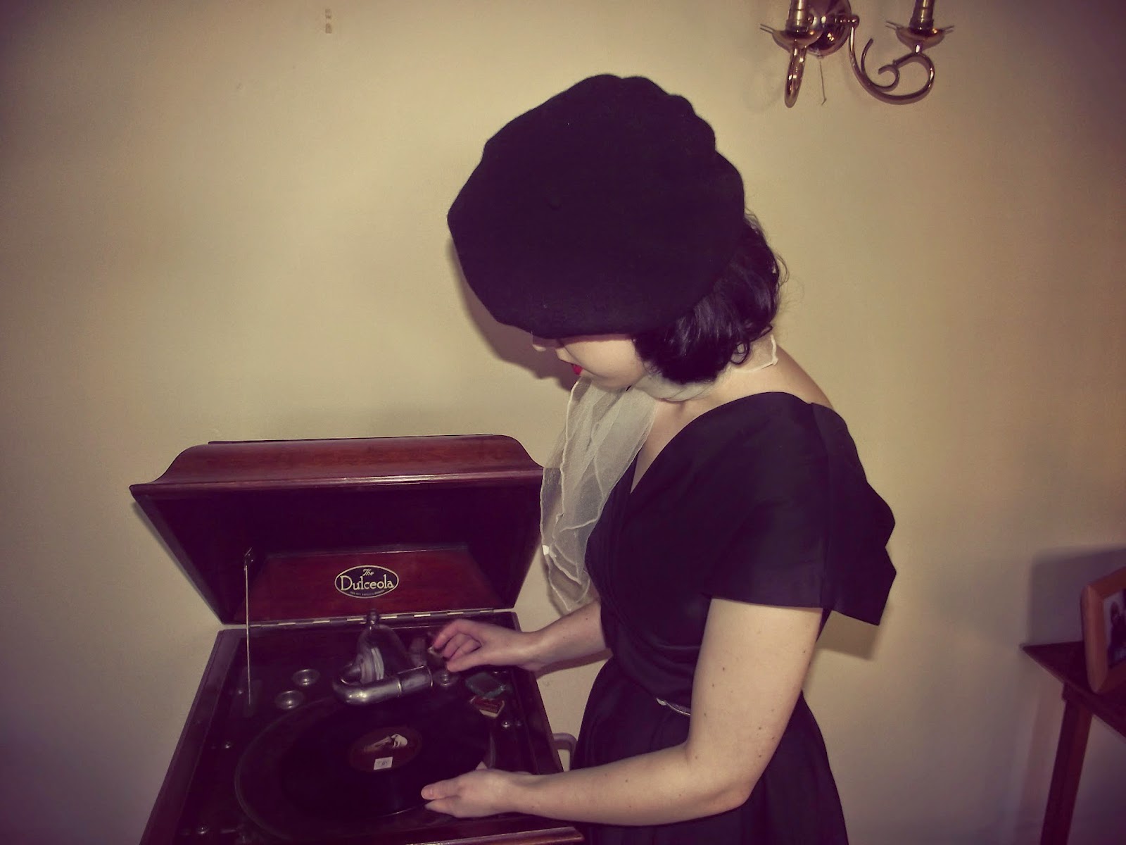 The other style I did was a bit more of a casual look. I paired the dress with a beret, neck tie and some glasses (record player optional!) You could also wear with flats, a cropped cardigan or anything else to make it more of a relaxed look (although I still felt pretty fabulous in this dress - it's hard not to be!) I removed my petticoat for this look.